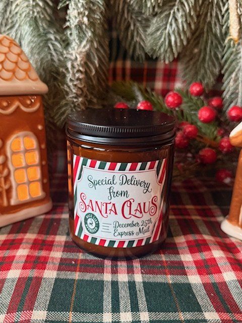 Bougie ambrée de Noel parfum Flocon de neige (odeur poudrée et sucrée)