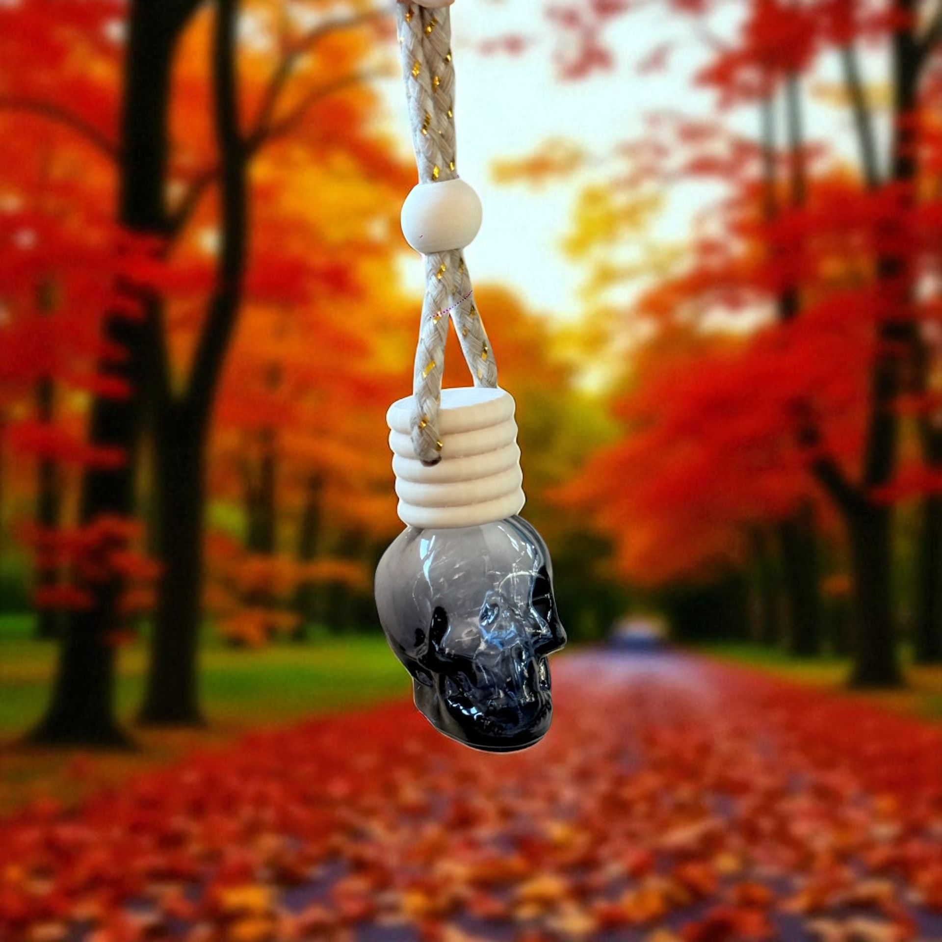 Diffuseur de parfum tête de mort noire fumé pour voiture 7.5ml